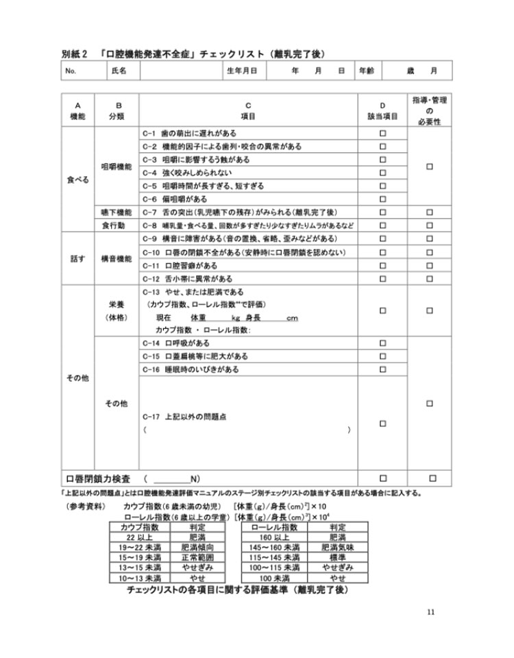 乳幼児期から学齢期(高等学校を含む)にかけて、良好な顎・顔面・口腔の成長発育及び適切な口腔機能が獲得されていることは、将来にわたって口腔機能の維持・向上を図っていく上でとても重要となります。
